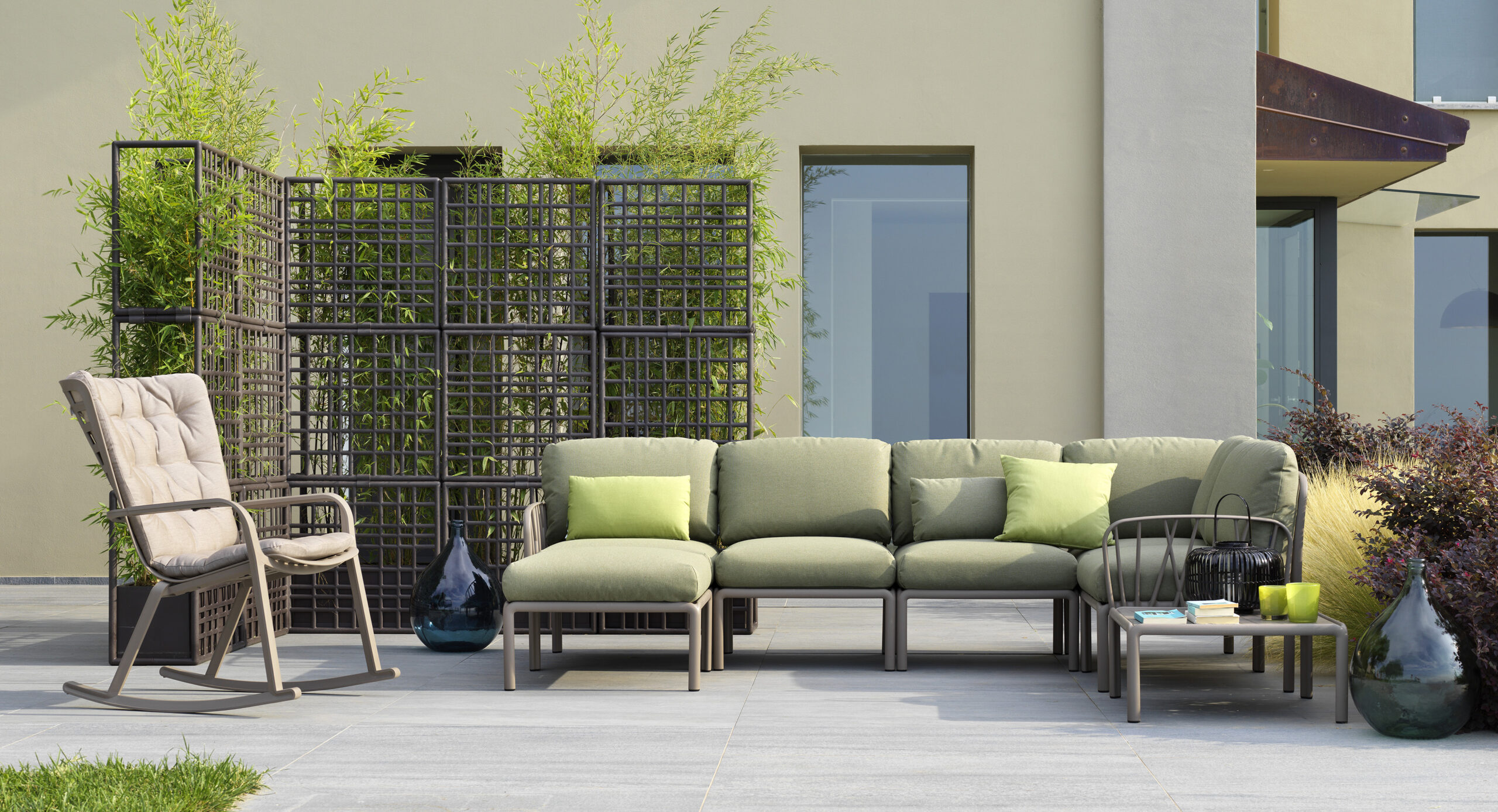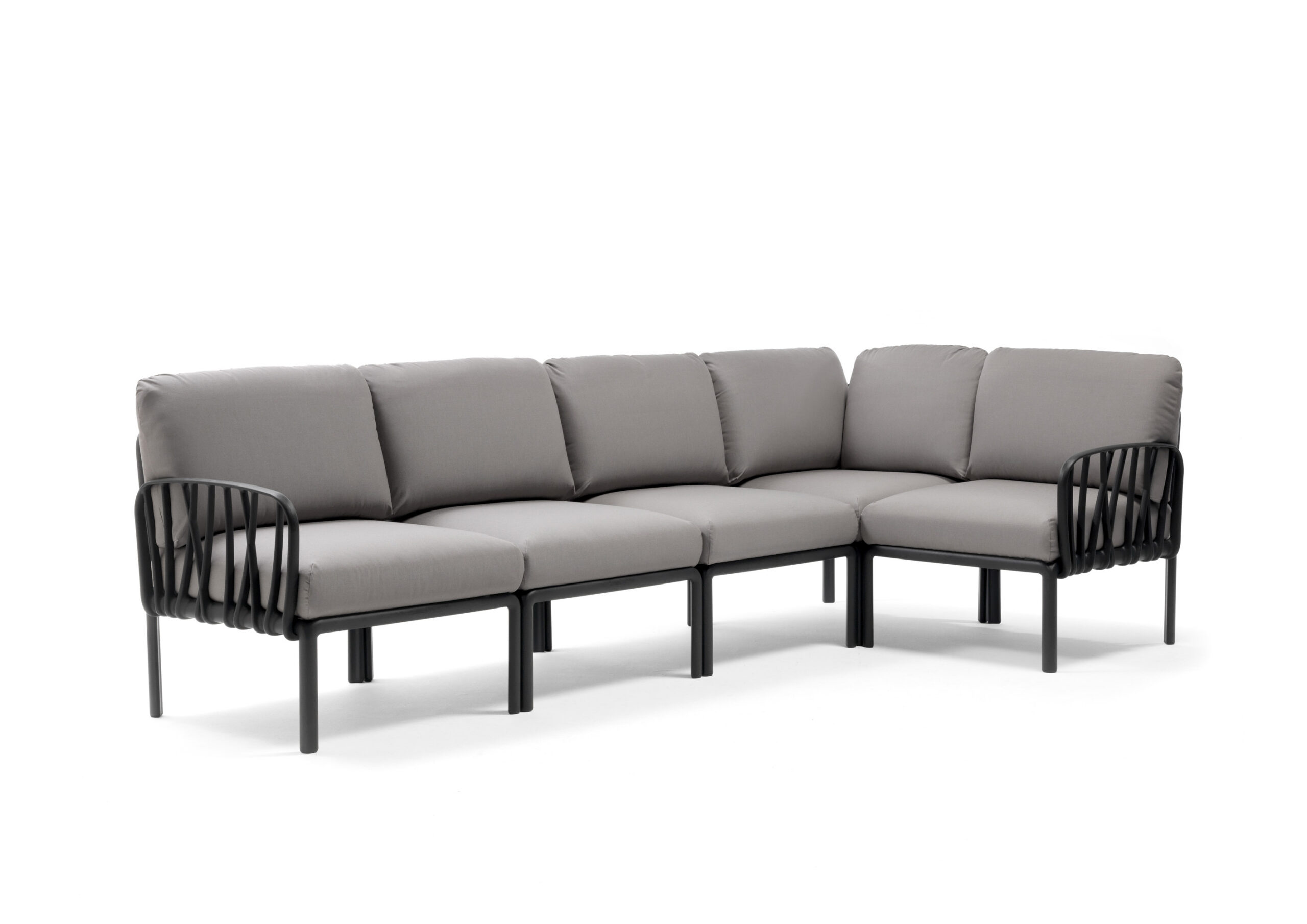 Puuokstest inspireeritud KOMODO 5 on klaaskiudvaigust polsterdatud istmete moodulsüsteem välistingimustes kasutamiseks, pakkudes suurepärast kompositsioonilist paindlikkust. Seda saab konfigureerida vastavalt ruumile, maitsele ja vajadustele. Raam on ühtlaselt värvitud klaaskiudpolüpropüleenvaigust koos UV-lisanditega. Seljatoe ja käetoed saab kinnitada istme igale küljele. Eemaldatav. Matt viimistlus. Libisemisvastaste jalgadega. Pakendis on viie istmepadja komplekt. Padjakatted on eemaldatavad tõmblukuga lihtsaks hoolduseks. Taaskasutatav vaik.