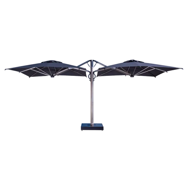 Edasiarendus uuendusliku avamis- ja sulgemissüsteemiga, mida toetab gaasvedru. Sissetõmmatav konstruktsioon, mis võimaldab laudade ja toolide kohal avamist ja sulgemist ilma mööblit liigutamata. Sobib igasse keskkonda ja on soovitatav professionaalseks kasutamiseks (baarid, restoranid, hotellid ja välialad). Titaaniefektiga alumiiniumraam. Tugev konstruktsioon, mis koosneb kahest vastastikku asetsevast päikesevarjust, mis on kinnitatud ühe toe külge ja paigutatud sümmeetriliselt.