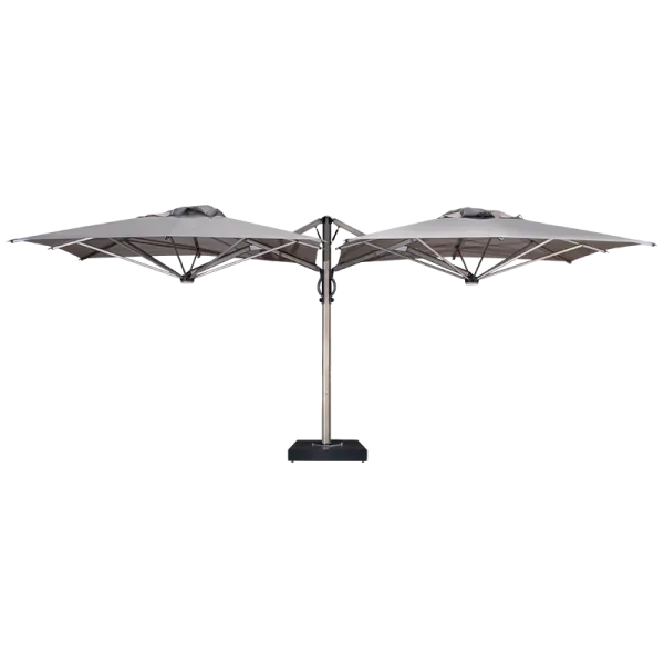 Edasiarendus uuendusliku gaasvedru abil avatava ja sulgeva süsteemiga. Sissetõmmatav konstruktsioon, mis võimaldab avada ja sulgeda laudade ja toolide kohal mööblit liigutamata. Sobib igasse keskkonda ja on soovitatav professionaalseks kasutamiseks (baarid, restoranid, hotellid ja õuealad). Titaaniefektiga alumiiniumraam. Tugev konstruktsioon, mis koosneb kahest kõrvuti asetsevast ja ühe toe külge kinnitatud päikesevarjust.