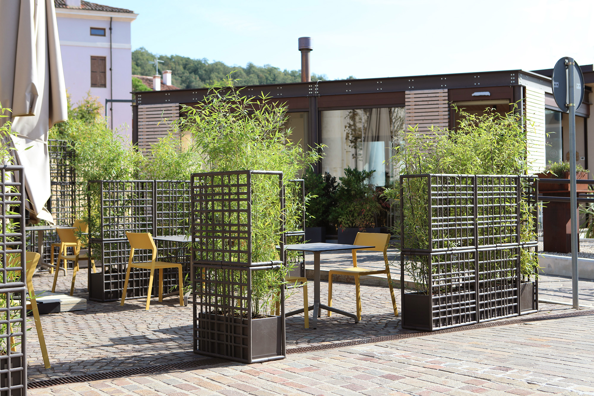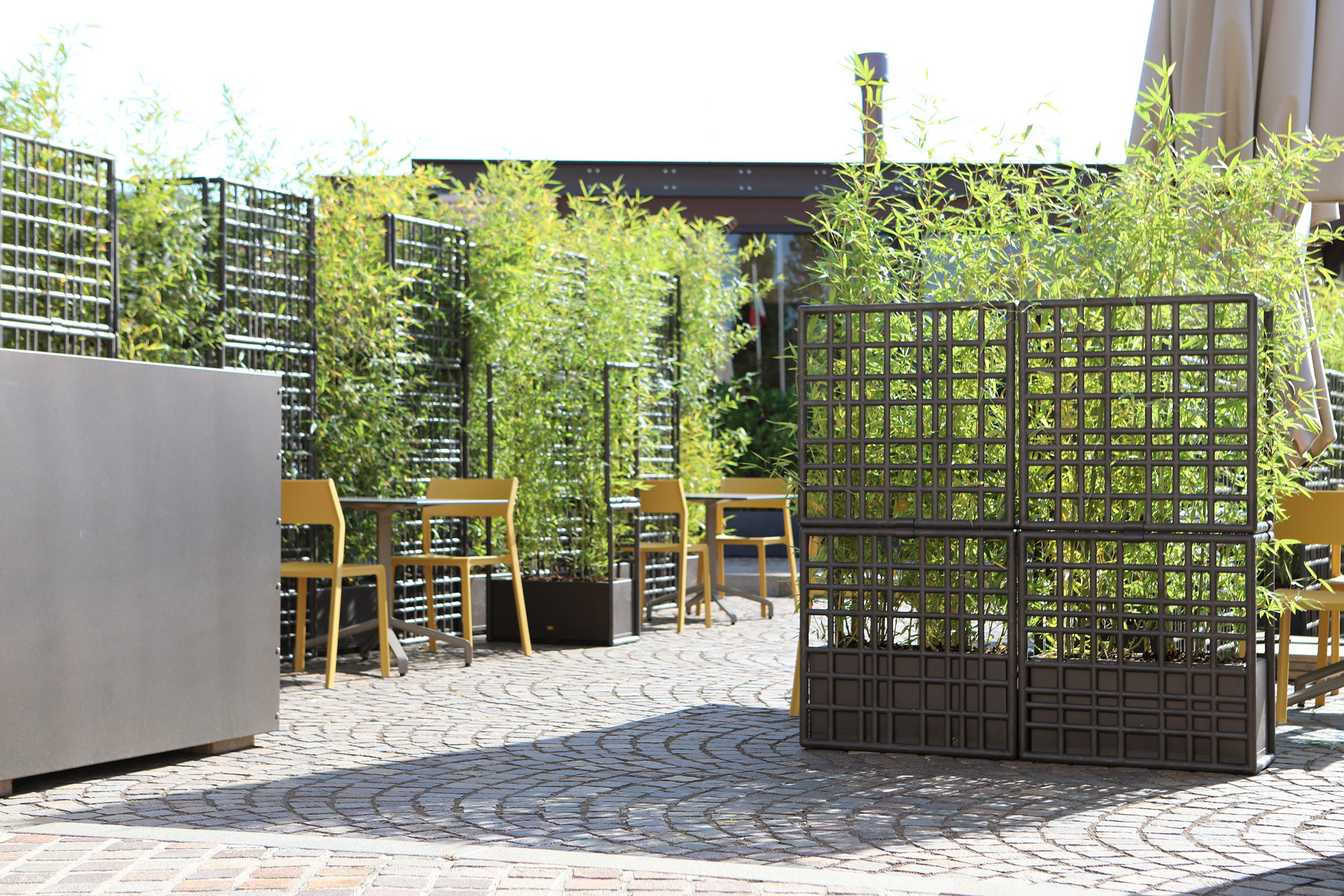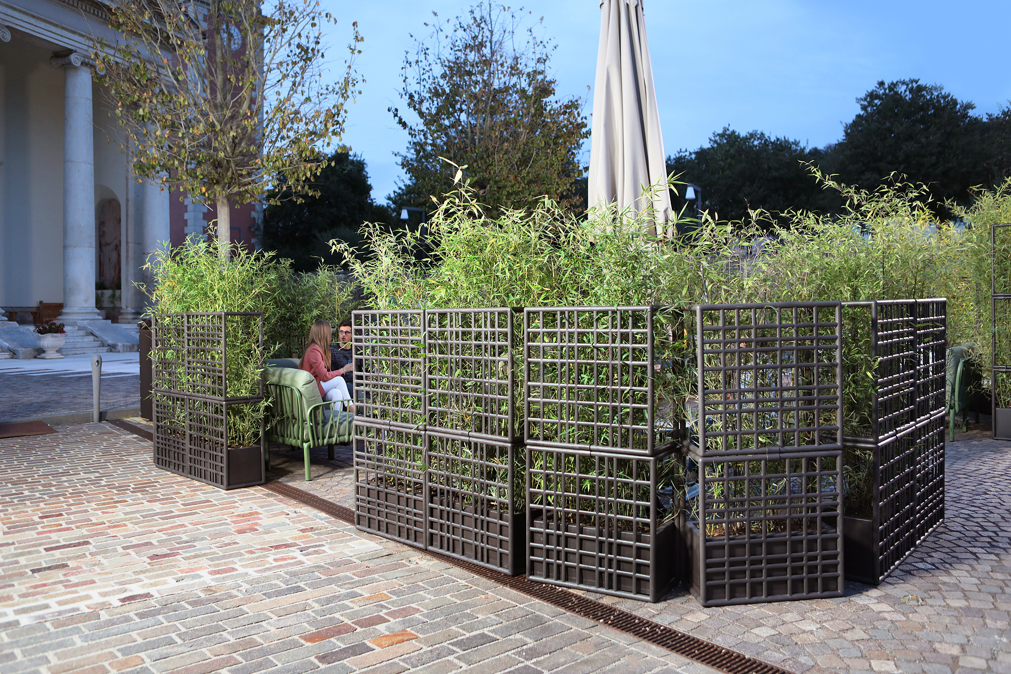 Sipario on moodulvahesein, mis on valmistatud taaskasutatavast plastist ja millel on isekastuv lillepott. Asümmeetrilise võrgu disainiga moodulid võimaldavad luua lineaarseid, poolitatud ja kumeraid paigutusi. Eraldiseisev moodulvahesein õues kasutamiseks, mida saab vastavalt vajadusele konfigureerida. Ideaalne õueruumide eraldamiseks. See koosneb kolmest võreelemendist, mida saab kruvisid kasutamata hõlpsalt kokku haakida, ja sisaldab isekastvat taimede konteinerit. Mooduleid saab vertikaalselt virnastada maksimaalselt 3 komponendi kõrguseni. Toote stabiilsuse tagamiseks tuleb pott täita vähemalt 30 kg kaaluva ballastiga. Materjal: regenereeritud ühtlaselt värvitud klaaskiuga tugevdatud polüpropüleenvaigust, UV-lisanditega. Matt viimistlus. Taaskasutatav vaik.