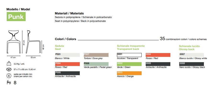 Virnastatav Punk tool ühendab endas mugavuse, tugevuse ja kerguse – omadused, millest ühele heale toolile piisab. Kuid see värviküllane iste pakub enamat, paistes silma oma erakordse disainiga. Polüpropüleenist istme viis värvitooni ja polükarbonaadist seljatoe seitse varianti loovad kokku 35 võimalikku värvikombinatsiooni. Tõeliselt kameeleonlik Punk tool sulandub igasse keskkonda ning suudab kohanduda peaaegu iga ruumi iseloomu ja identiteediga.